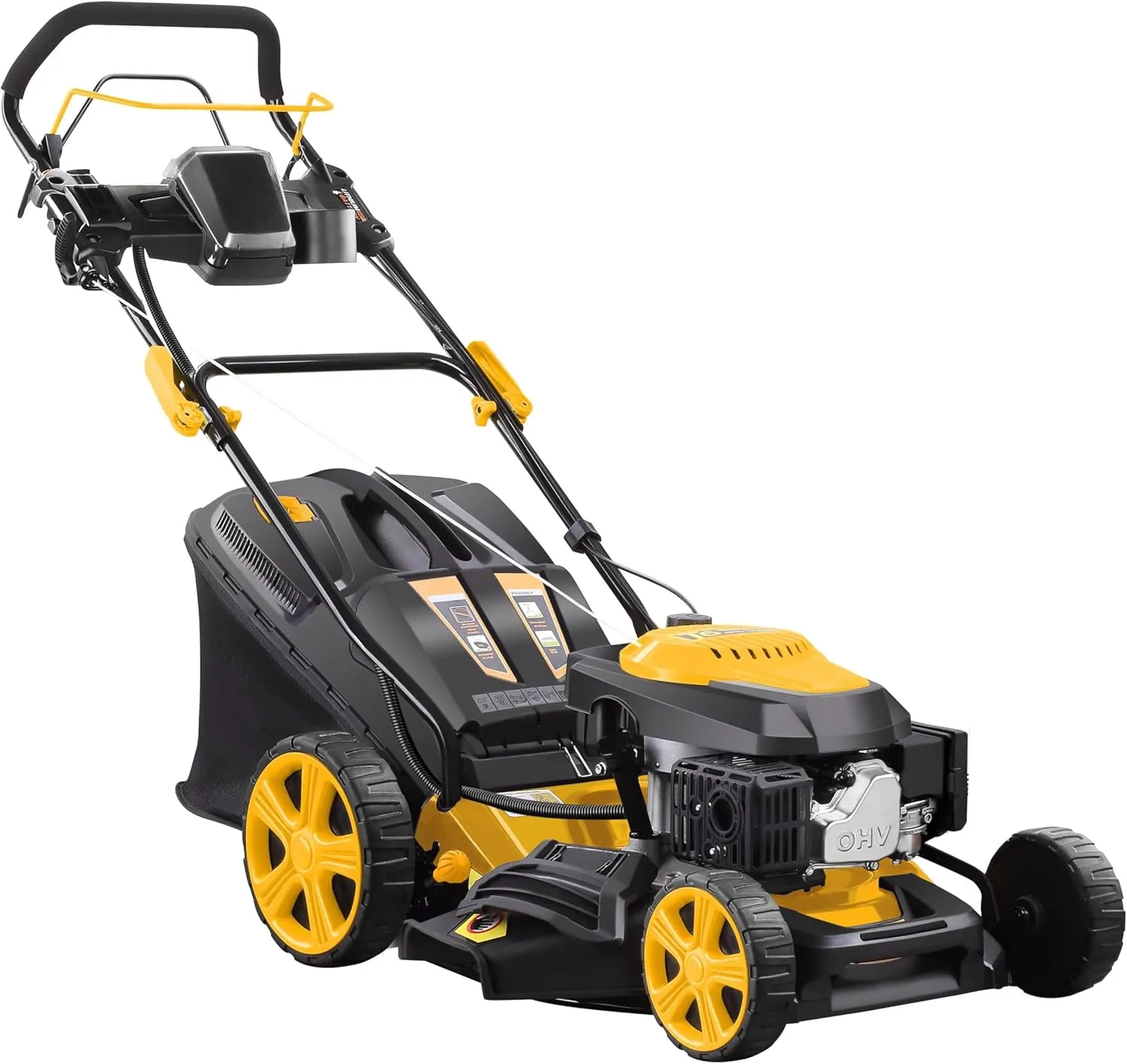 Tondeuse à Essence Autotractée 146cm3 - Multifonction 4-en-1 - Largeur de Coupe 46cm - 7 Réglages de Hauteur - Démarrage Électrique Facile - Système de Nettoyage Rapide